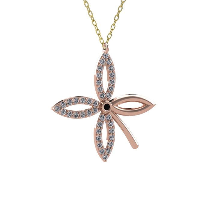 Siyah zirkon ve pırlanta 925 ayar rose altın kaplama gümüş kolye (0.429 karat, 40 cm altın rolo zincir)