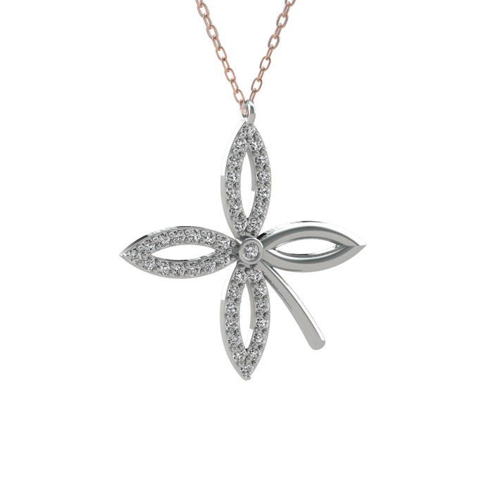 Swarovski ve beyaz zirkon 8 ayar beyaz altın kolye (40 cm rose altın rolo zincir)