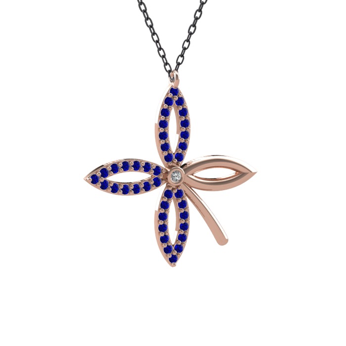 Swarovski ve lab safir 14 ayar rose altın kolye (40 cm gümüş rolo zincir)