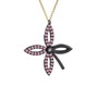 Swarovski ve pembe kuvars 925 ayar siyah rodyum kaplama gümüş kolye (40 cm altın rolo zincir)