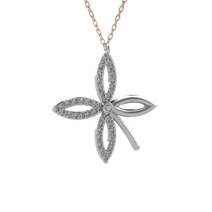 Swarovski ve pırlanta 14 ayar beyaz altın kolye (0.429 karat, 40 cm rose altın rolo zincir)
