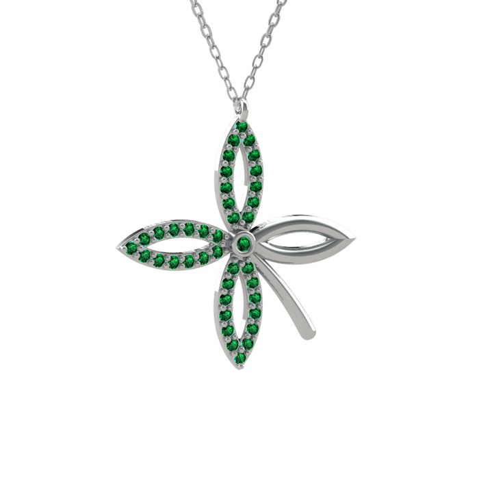 Yeşil kuvars 14 ayar beyaz altın kolye (40 cm beyaz altın rolo zincir)