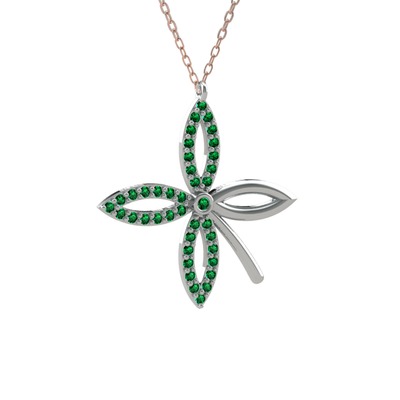 Yeşil kuvars 8 ayar beyaz altın kolye (40 cm rose altın rolo zincir)