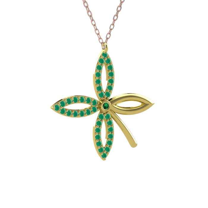 Yeşil kuvars ve kök zümrüt 925 ayar altın kaplama gümüş kolye (40 cm rose altın rolo zincir)