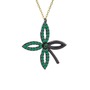 Yeşil kuvars ve kök zümrüt 925 ayar siyah rodyum kaplama gümüş kolye (40 cm altın rolo zincir)