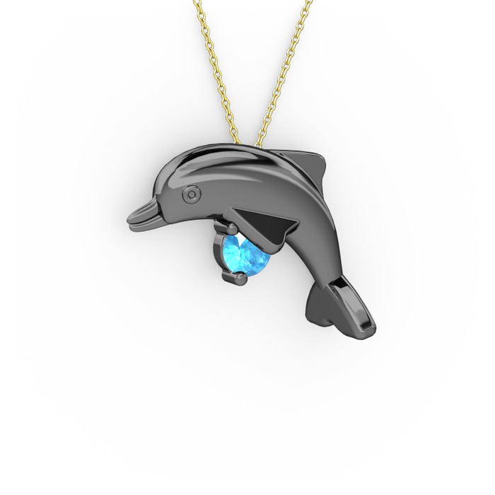 Akuamarin 925 ayar siyah rodyum kaplama gümüş kolye (40 cm altın rolo zincir)