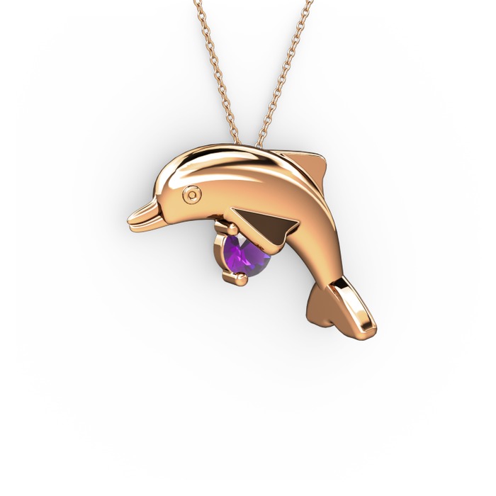 Ametist 8 ayar rose altın kolye (40 cm rose altın rolo zincir)