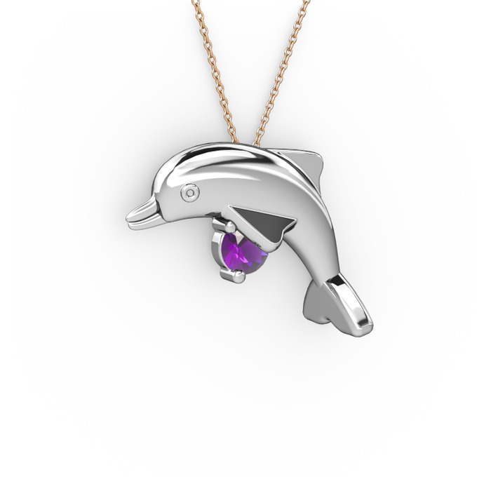 Ametist 925 ayar gümüş kolye (40 cm rose altın rolo zincir)