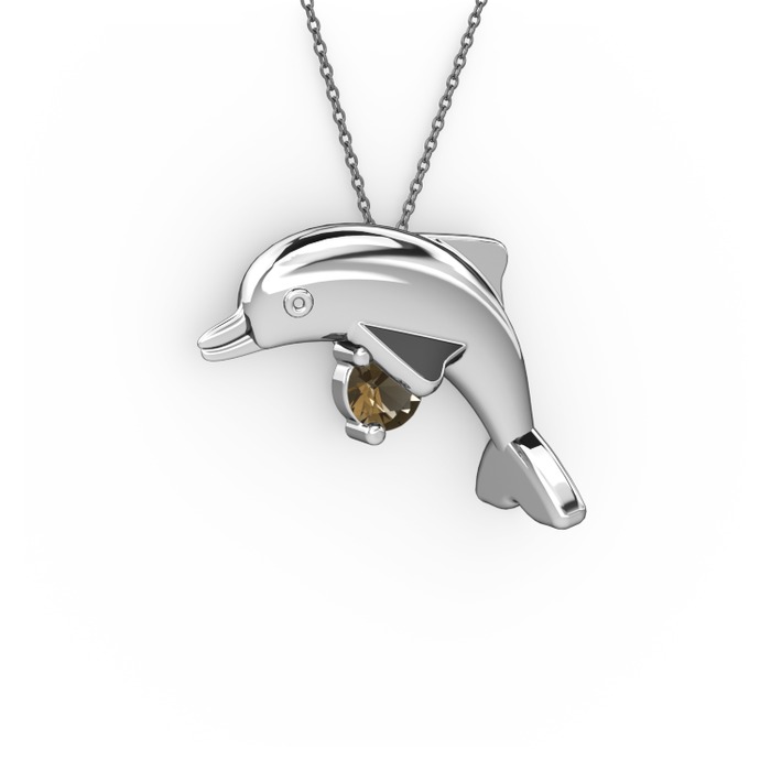 Dumanlı kuvars 14 ayar beyaz altın kolye (40 cm gümüş rolo zincir)