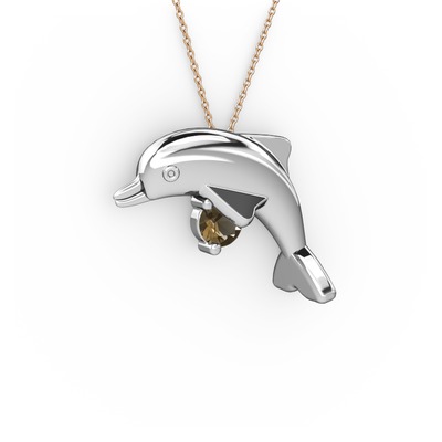 Dumanlı kuvars 925 ayar gümüş kolye (40 cm rose altın rolo zincir)