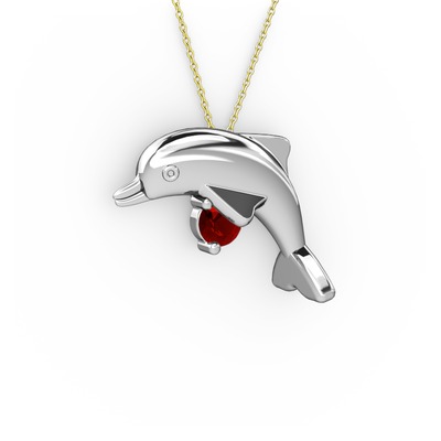 Garnet 14 ayar beyaz altın kolye (40 cm altın rolo zincir)