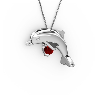 Garnet 8 ayar beyaz altın kolye (40 cm gümüş rolo zincir)