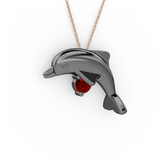 Garnet 925 ayar siyah rodyum kaplama gümüş kolye (40 cm rose altın rolo zincir)