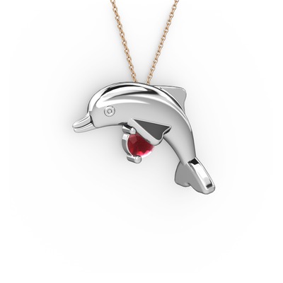 Kök yakut 8 ayar beyaz altın kolye (40 cm gümüş rolo zincir)