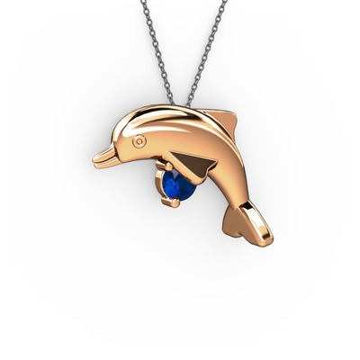 Lab safir 18 ayar rose altın kolye (40 cm gümüş rolo zincir)