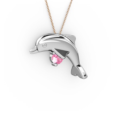 Pembe kuvars 14 ayar beyaz altın kolye (40 cm rose altın rolo zincir)