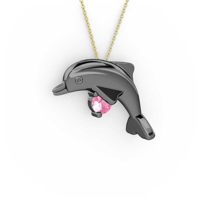 Pembe kuvars 925 ayar siyah rodyum kaplama gümüş kolye (40 cm altın rolo zincir)