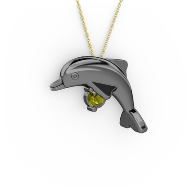 Peridot 925 ayar siyah rodyum kaplama gümüş kolye (40 cm gümüş rolo zincir)