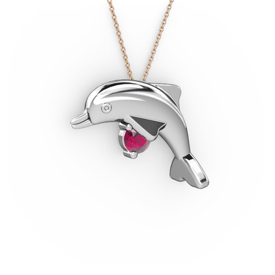 Rodolit garnet 925 ayar gümüş kolye (40 cm rose altın rolo zincir)