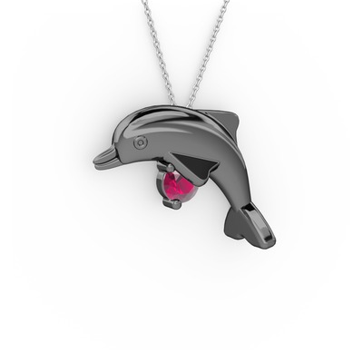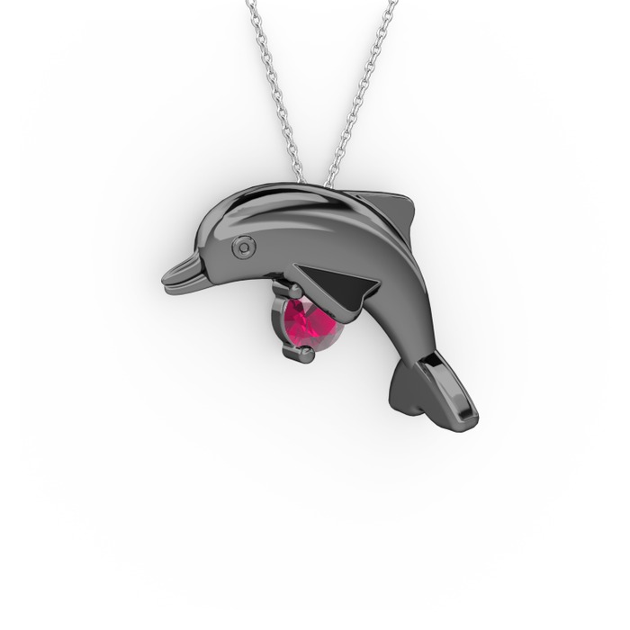 Rodolit garnet 925 ayar siyah rodyum kaplama gümüş kolye (40 cm beyaz altın rolo zincir)