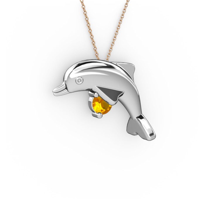Sitrin 925 ayar gümüş kolye (40 cm rose altın rolo zincir)