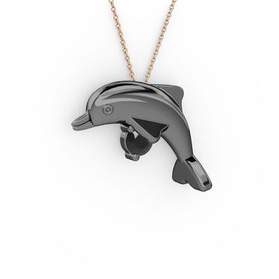 Siyah zirkon 925 ayar siyah rodyum kaplama gümüş kolye (40 cm rose altın rolo zincir)