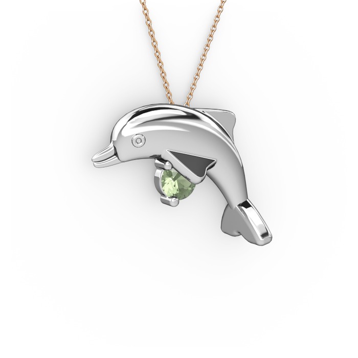Yeşil kuvars 14 ayar beyaz altın kolye (40 cm rose altın rolo zincir)