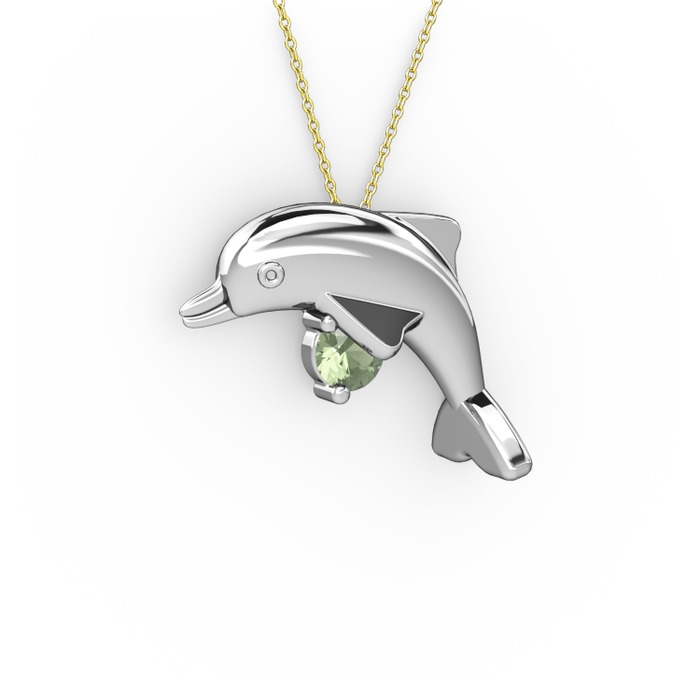 Yeşil kuvars 18 ayar beyaz altın kolye (40 cm altın rolo zincir)