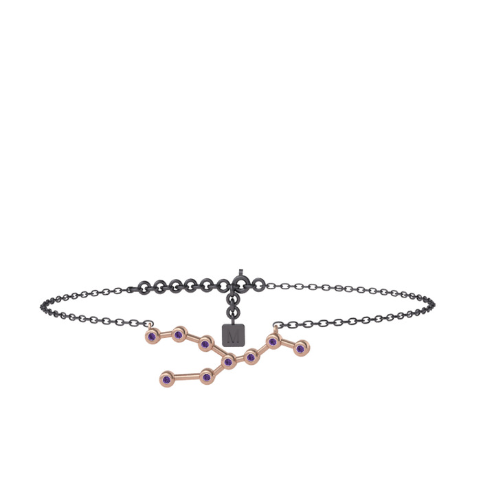 Ametist 14 ayar rose altın bilezik (20 cm gümüş rolo zincir)