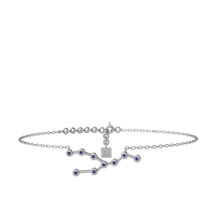 Ametist 18 ayar beyaz altın bilezik (20 cm gümüş rolo zincir)