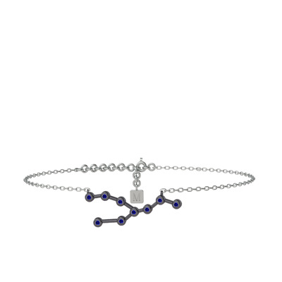 Lab safir 925 ayar siyah rodyum kaplama gümüş bilezik (20 cm beyaz altın rolo zincir)