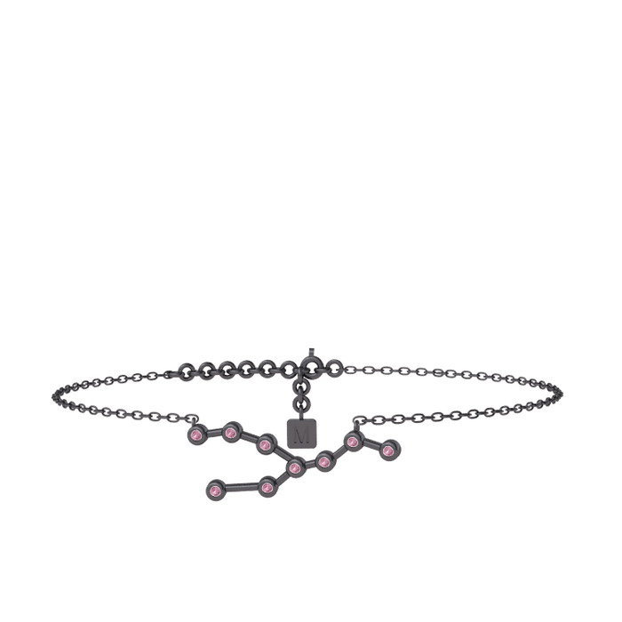 Pembe kuvars 925 ayar siyah rodyum kaplama gümüş bilezik (20 cm gümüş rolo zincir)