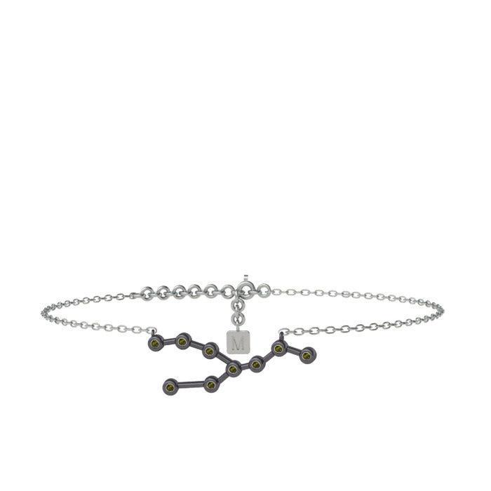 Taurus Halhal - Peridot 925 ayar siyah rodyum kaplama gümüş bilezik (20 cm gümüş rolo zincir)