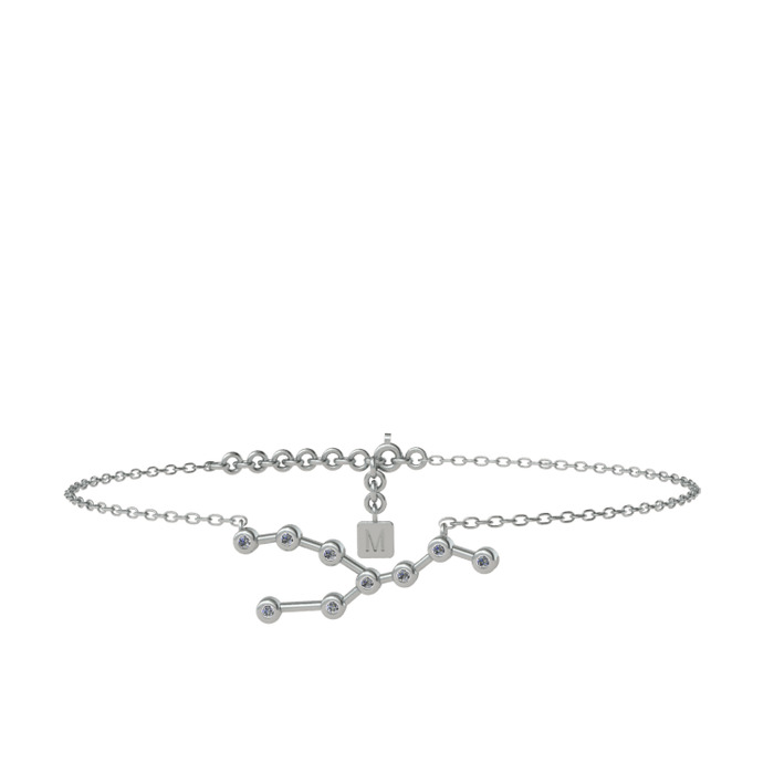 Pırlanta 925 ayar gümüş bilezik (0.099 karat, 20 cm beyaz altın rolo zincir)