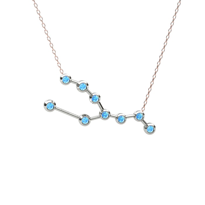 Akuamarin 8 ayar beyaz altın kolye (40 cm rose altın rolo zincir)