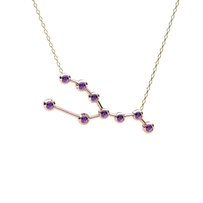 Ametist 18 ayar rose altın kolye (40 cm altın rolo zincir)