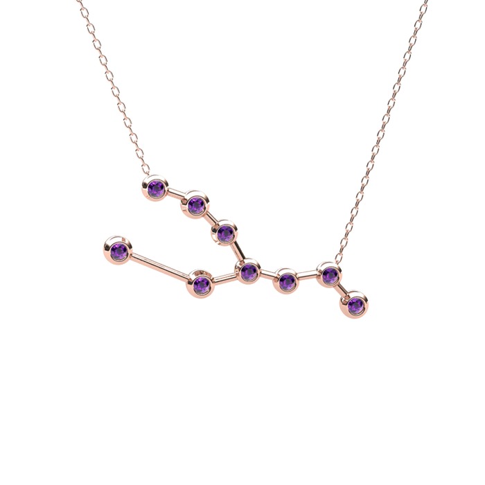 Ametist 18 ayar rose altın kolye (40 cm gümüş rolo zincir)