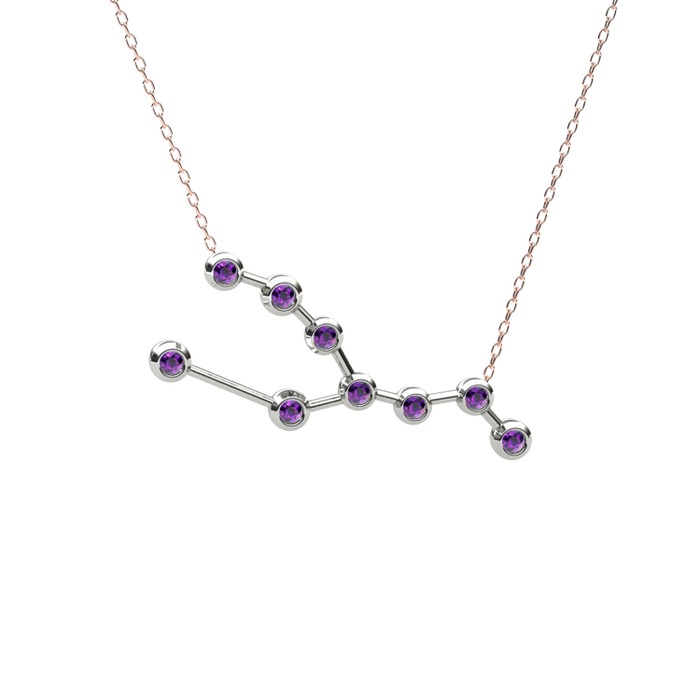 Ametist 925 ayar gümüş kolye (40 cm rose altın rolo zincir)