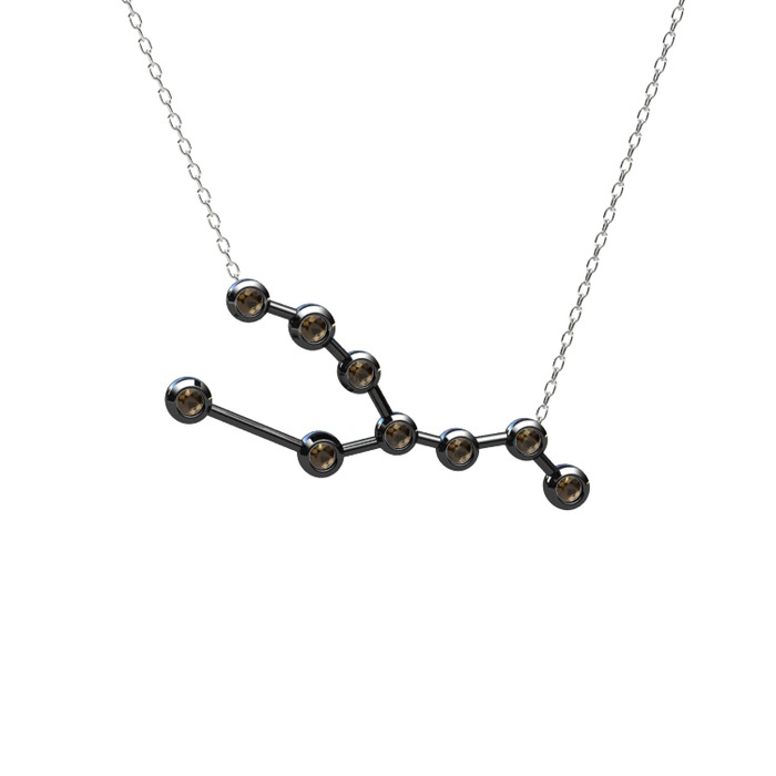 Dumanlı kuvars 925 ayar siyah rodyum kaplama gümüş kolye (40 cm beyaz altın rolo zincir)