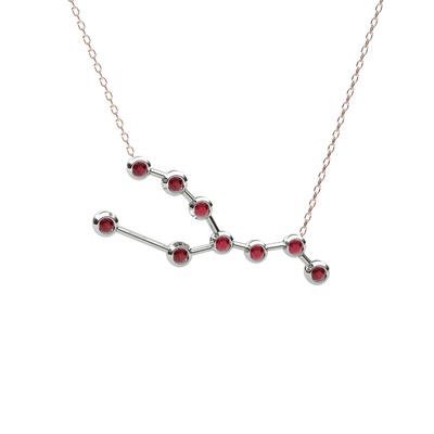 Kök yakut 18 ayar beyaz altın kolye (40 cm rose altın rolo zincir)