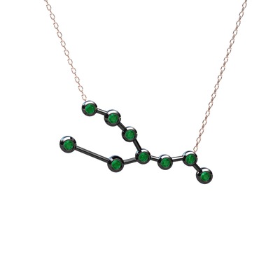 Kök zümrüt 925 ayar siyah rodyum kaplama gümüş kolye (40 cm rose altın rolo zincir)
