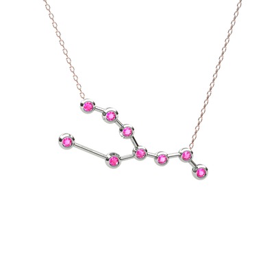 Pembe kuvars 18 ayar beyaz altın kolye (40 cm gümüş rolo zincir)