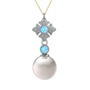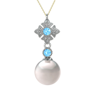 Inci, akuamarin ve beyaz zirkon 14 ayar beyaz altın kolye (40 cm gümüş rolo zincir)