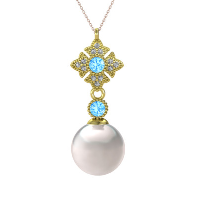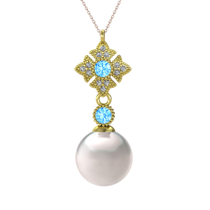 Inci, akuamarin ve beyaz zirkon 8 ayar altın kolye (40 cm rose altın rolo zincir)