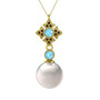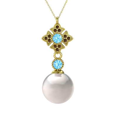 Inci, akuamarin ve dumanlı kuvars 14 ayar altın kolye (40 cm gümüş rolo zincir)