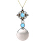 Inci, akuamarin ve dumanlı kuvars 14 ayar beyaz altın kolye (40 cm altın rolo zincir)