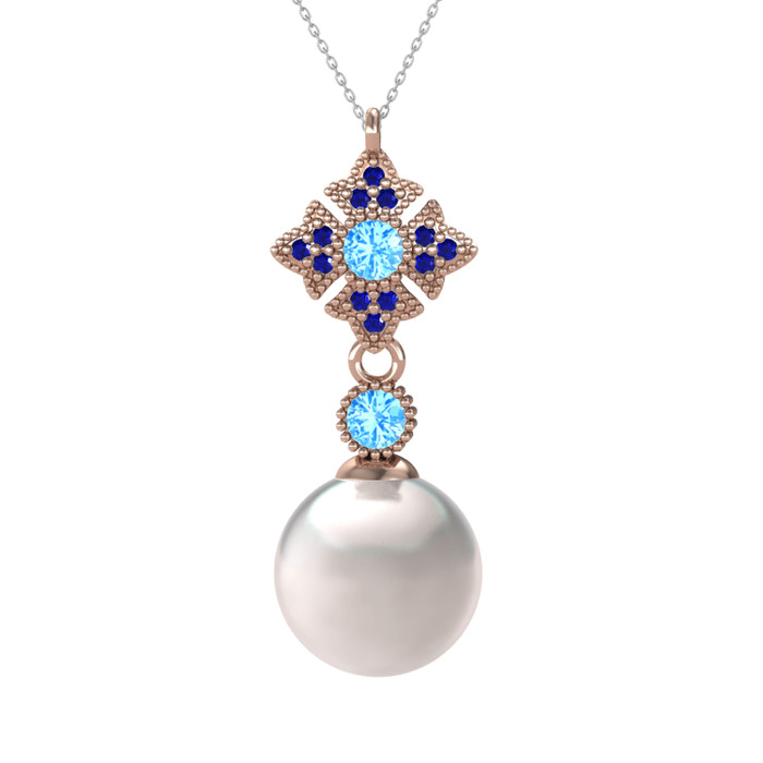 Inci, akuamarin ve lab safir 14 ayar rose altın kolye (40 cm gümüş rolo zincir)