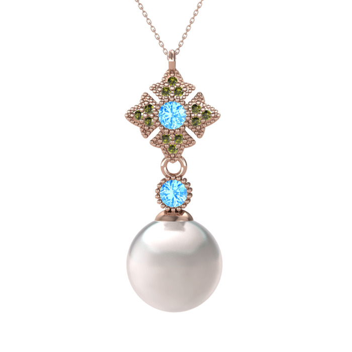 Inci, akuamarin ve peridot 14 ayar rose altın kolye (40 cm gümüş rolo zincir)