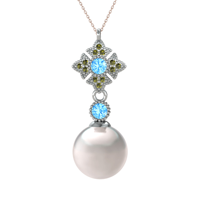 Inci, akuamarin ve peridot 925 ayar gümüş kolye (40 cm rose altın rolo zincir)