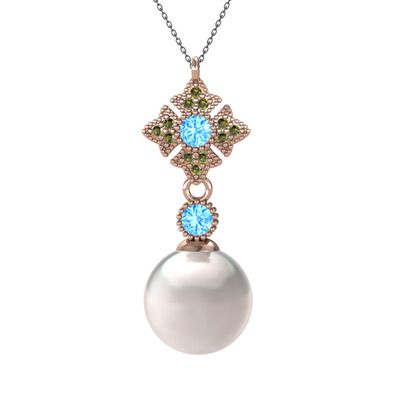 Inci, akuamarin ve peridot 925 ayar rose altın kaplama gümüş kolye (40 cm gümüş rolo zincir)